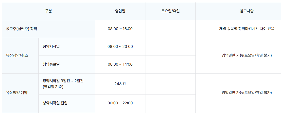 공모주(실권주) 청약 : 08:00 ~ 16:00 (개별 종목별 청약마감시간 차이 있음)