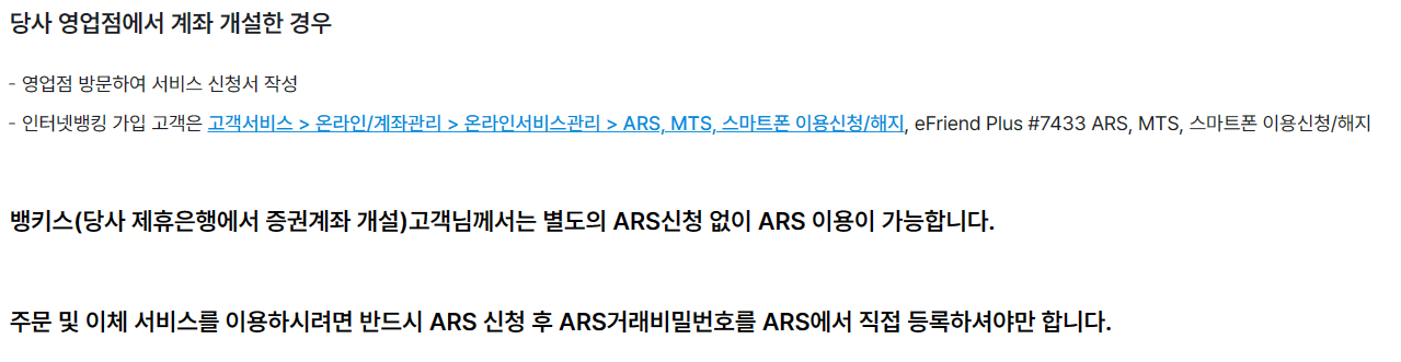- 이체업무 :입출금 안내, 주식/채권 이체 안내 , 자동이체 서비스, 이체예약 서비스