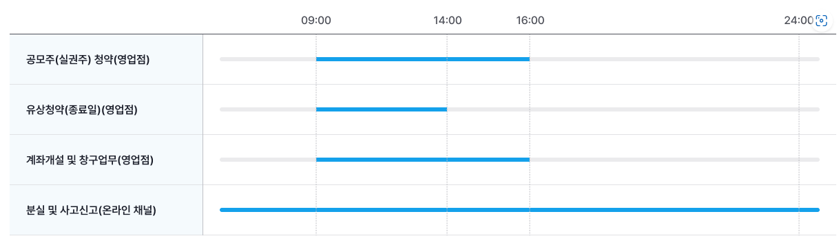 - 업무시간 안내 :주식, 금융상품거래, 입출금 , 청약 및 기타 업무 시간