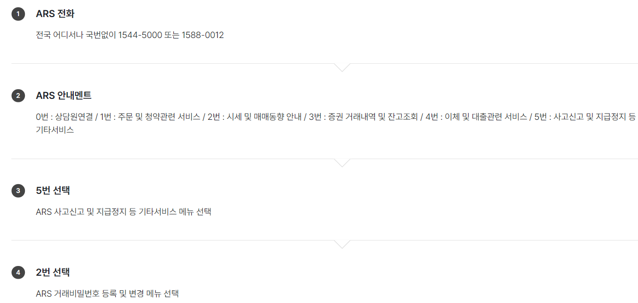 - 알림서비스 :거래정보 알림 서비스 (입출금. 고 발생통보, 체결자동통보, 미수 통보, 신용/대출 만기 통보 등)