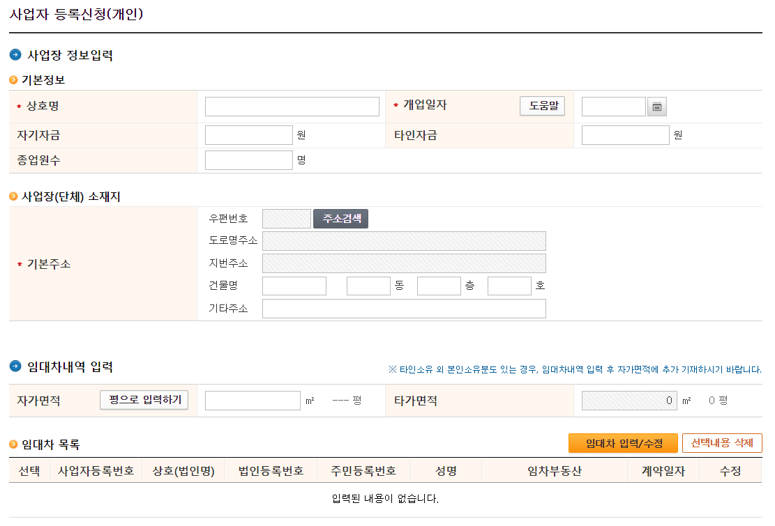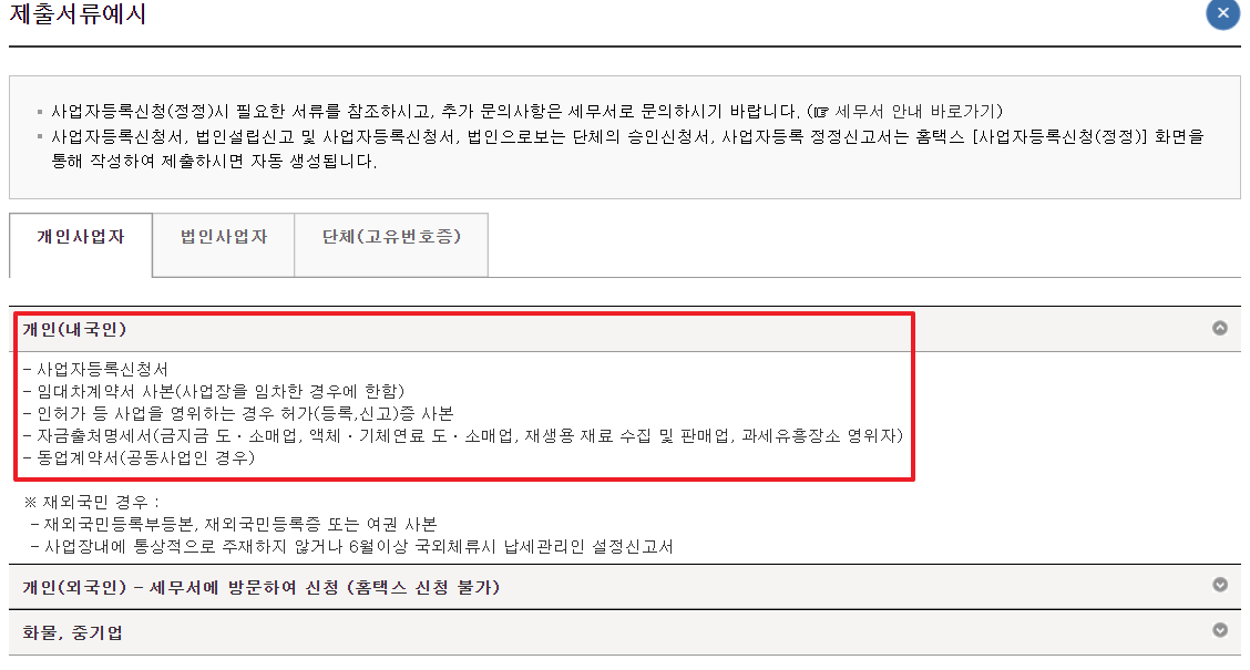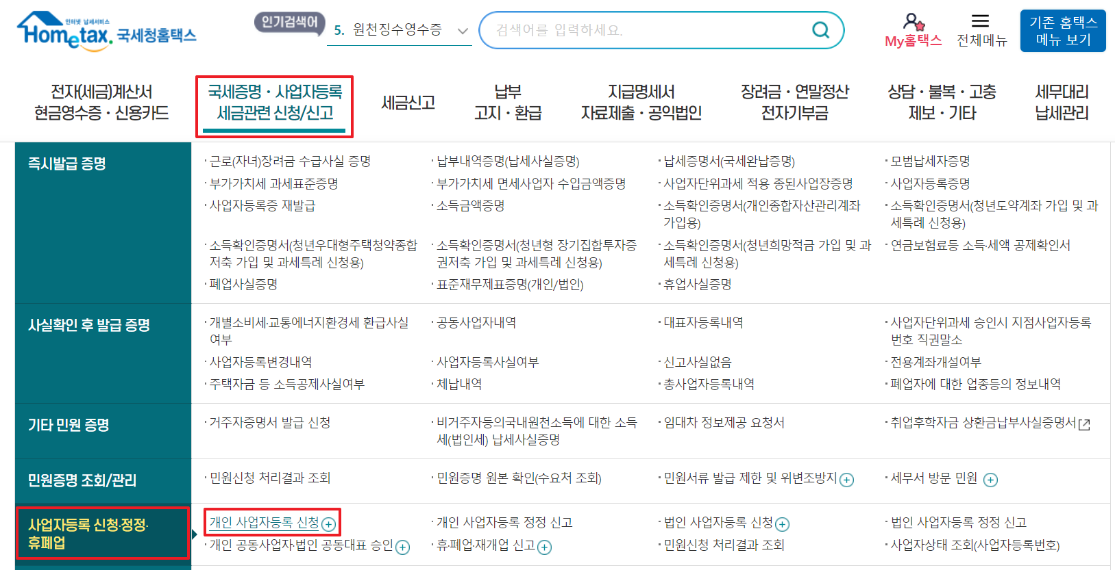 국세증명 사업자등록, 세금 관련 신청 /신고 - 사업자등록 신청, 정정, 휴폐업 -[개인사업자 등록신청]