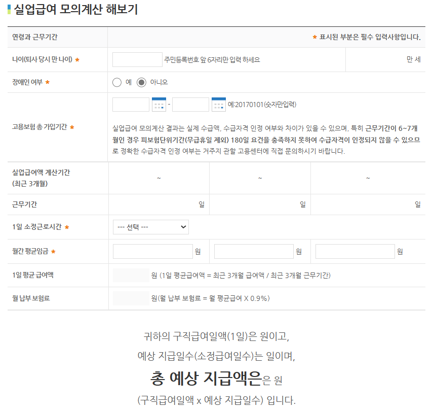 2024.02.15 - [분류 전체보기] - 일용직 실업급여 수급 자격 및 모의계산, 그 외 혜택