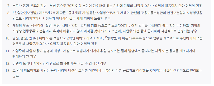 - 정당한 사유 없이 장기간 무단 결근하여 해고된 경우