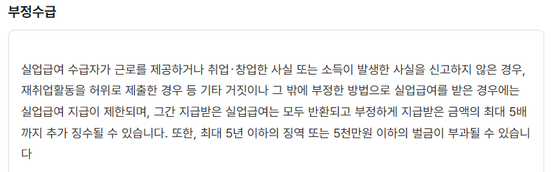 ❌ 신고하지 않고 계속 실업급여를 받으면 환수 조치 및 벌금이 부과될 수 있음