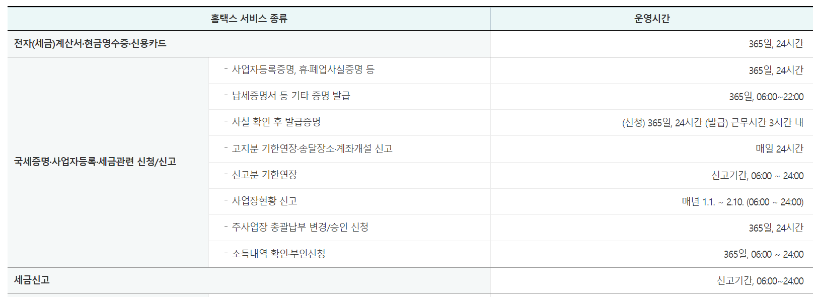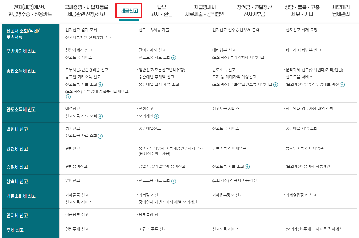 | 전자(세금)계산서. 현금영수증, 신용카드 | 전자(세금)계산서 조회.발급,현금영수증 조회.발급,사업용신용카드 등록 등 |