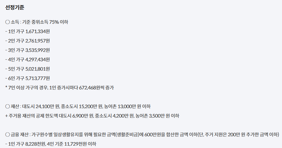 가구 구성원에 따른 정확한 금액은 아래 내용을 확인하시면 됩니다.