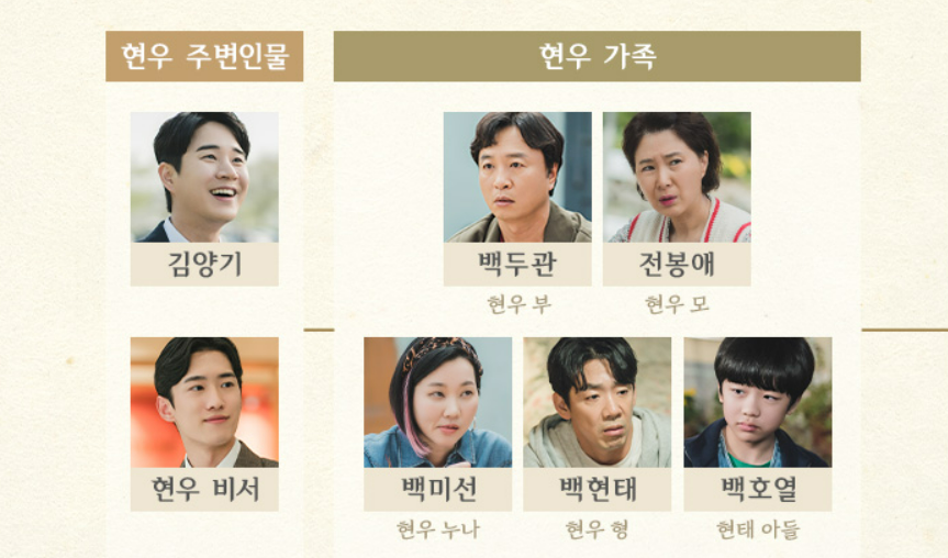 백현태(김도현) : 퀸즈복싱 체육관 관장 / 현우의 형, 전직 복싱 선수, 전국체전 동메달 리스트, 현재 부모님의 집에서 함께. 살고 있음.