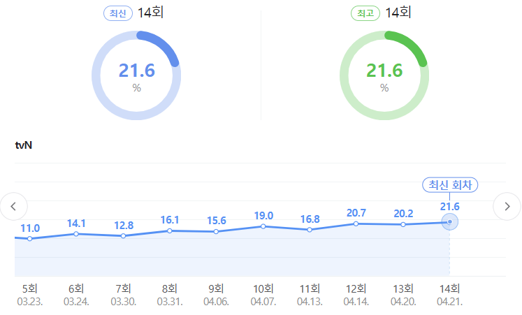 눈물의 여왕 14회 차 시청률 21.6%