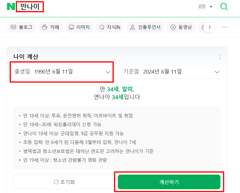 계산방법, 연나이, 만 나이 위에 내용을 다시 한번 확인하시고