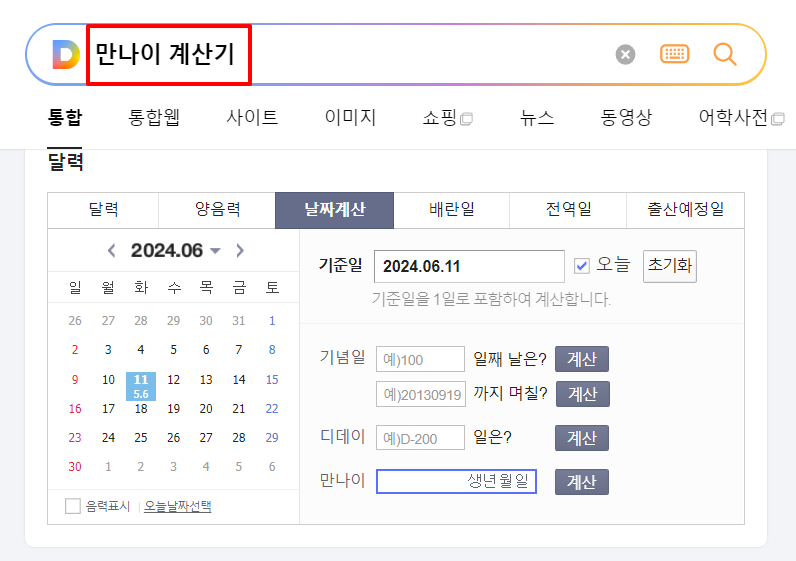 다음에서 "만 나이 계산기" 검색하면 쉽게 계산하실 수 있습니다.