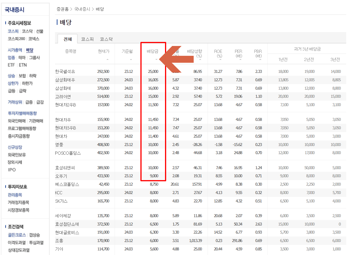 검색하시면 증권정보 배당금 상위주로 보시면 됩니다.