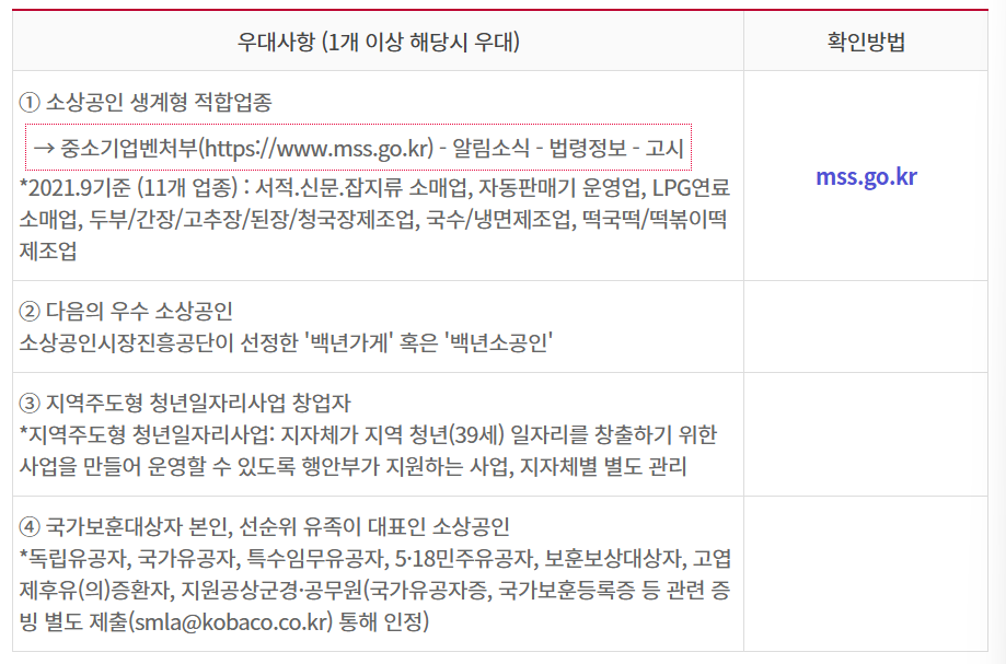 - 소상공인생계형 적합업종 (서적, 신문, 잡지류 소매업, 자동판매기 운영업 등)