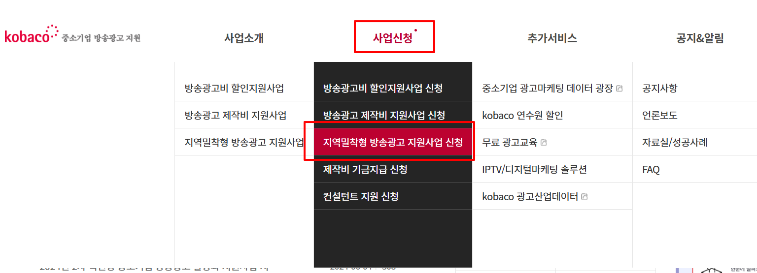 사업신청 - 지역밀착형 방송광고 지원사업 신청