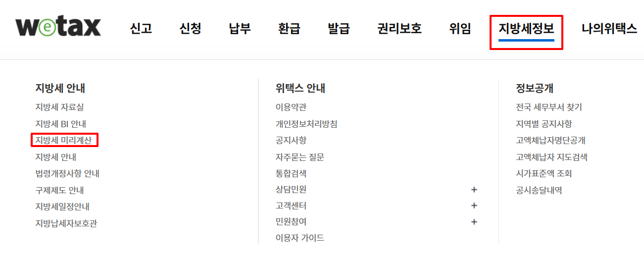 위택스 - 지방세정보 - 지방세미리계산 - 자동차세 (소유)에서 계산