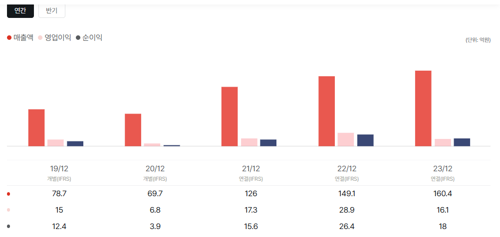 | 매출액 | 78억 | 69억 | 126억 | 149억 | 160억 |