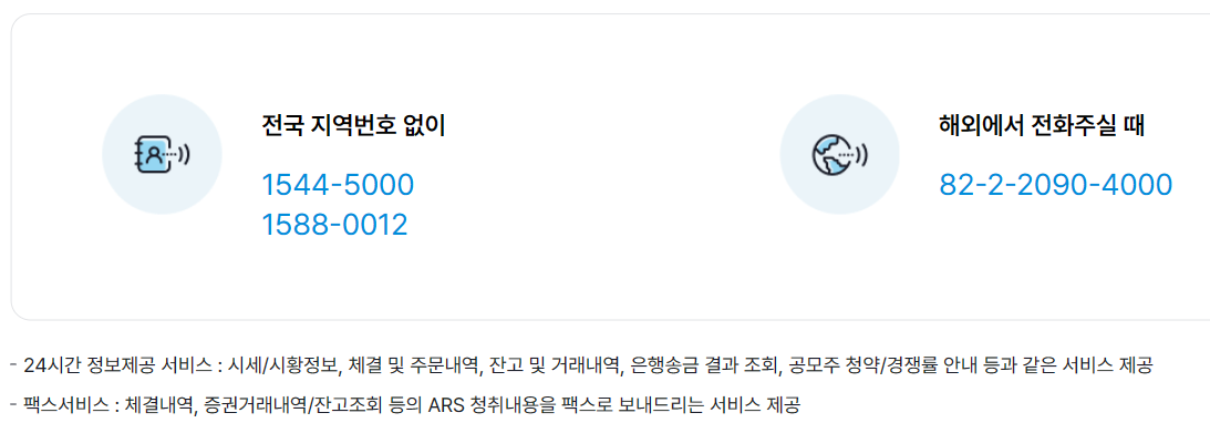 - 알림서비스 :거래정보 알림 서비스 (입출금. 고 발생통보, 체결자동통보, 미수 통보, 신용/대출 만기 통보 등)