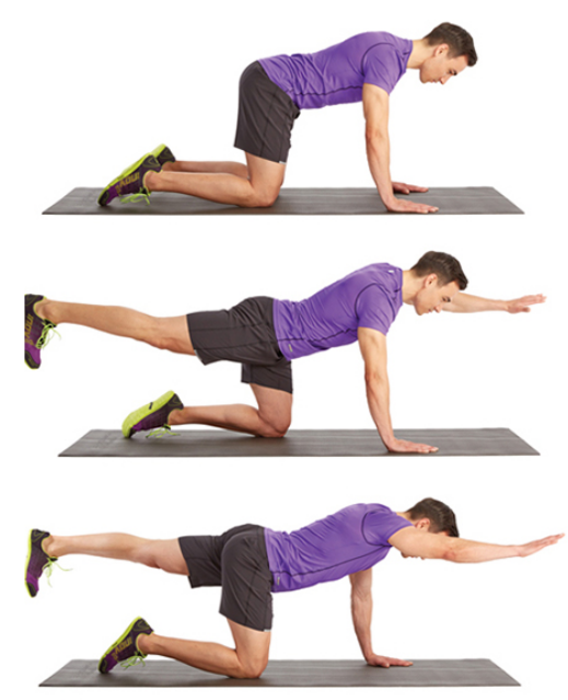 균형을 유지하기 수월하면 한쪽 팔과 그 반대쪽 다리를 동시에 올립니다.
