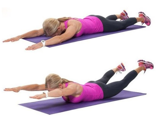 호흡을 내 뱉으면서 슈퍼맨처럼 양팔과 양다리를 취로 최대한 들어 올려 3~5초가 유지합니다.