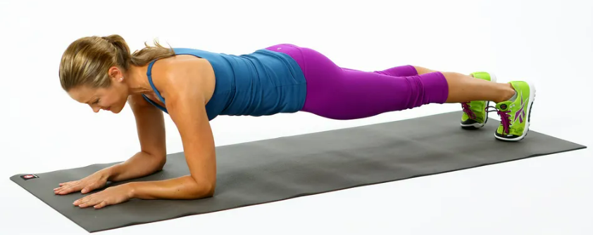 손은 어깨 아래에 두고 팔꿈치를 살짝 구부려 바닥에 대고 , 발끝에서 머리까지 일직선으로 몸을 유지합니다.