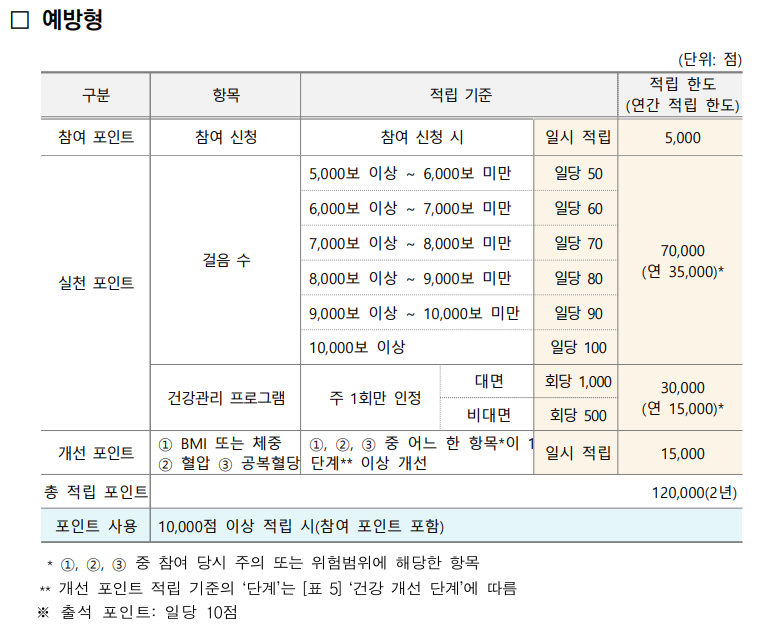 예방형 : 국민건강보험 공단에서 주관하는 국가 검진을 받은 만 20~64세 중 건강관리가 필요한 국민