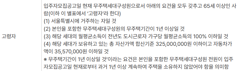 입주자 모집 공고일 현재 무주택자로 아래 요건을 모두 갖춘 사람