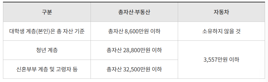 신혼부부 계층 및 고령자 등 : 총 자산 32,500만 원 이하